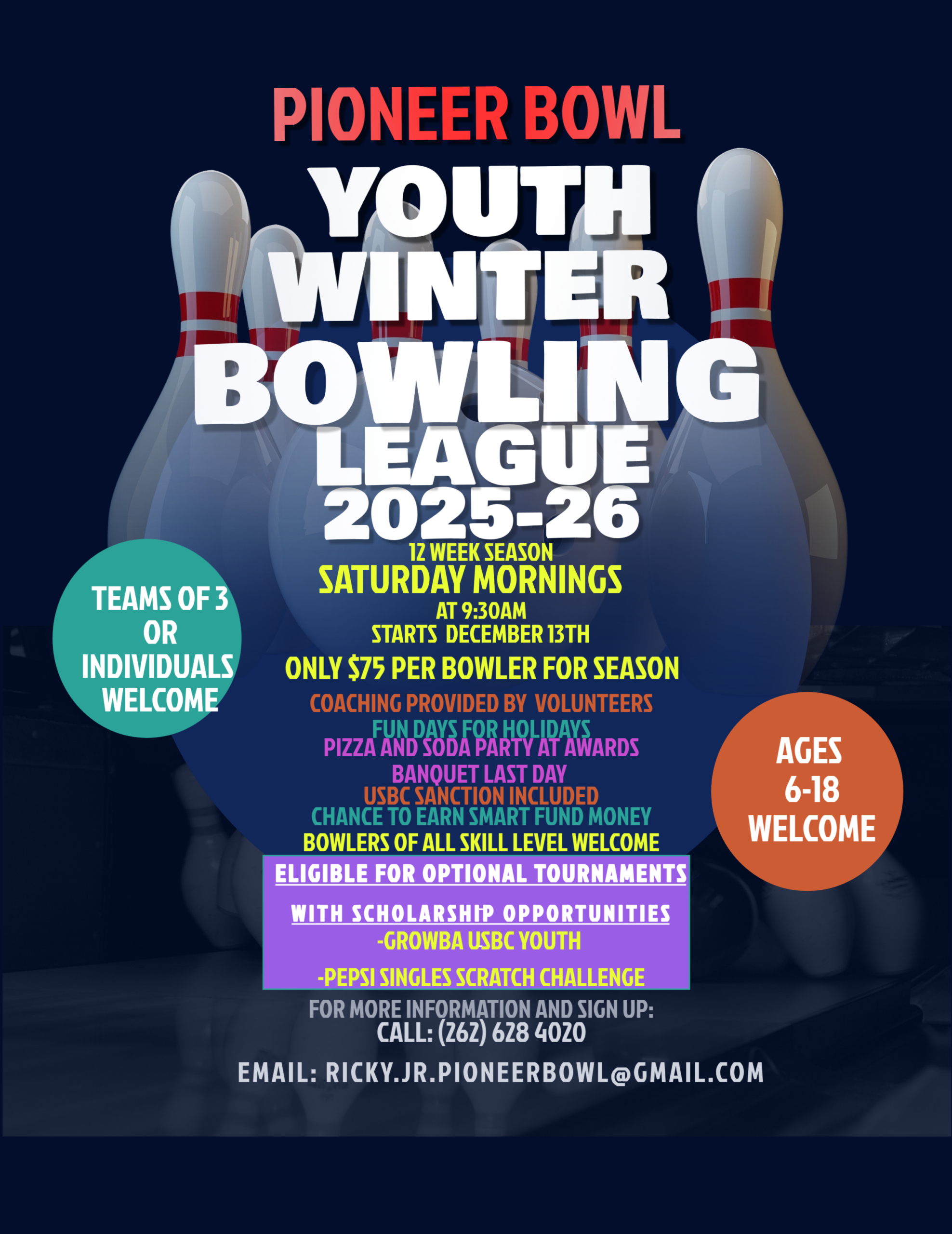 We are dedicated to providing a fun and safe place for children of all ages to come and enjoy bowling. Youth bowling leagues are available for children as young as 6 years old to teenagers up to 18 years old, to make bowling more enjoyable.
